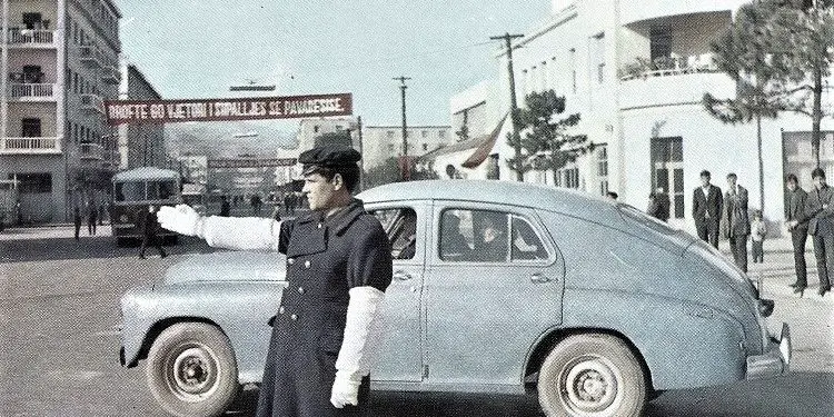 Një grua shtynte një karrocë fëmije në mes të xhadesë, ku disa fëmijë loznin pafkash dhe një burrë i vetëm qëndronte, pa lëvizur dhe lexonte “Zëri i Popullit” e cila është “Pravda” e Shqipërisë. Si një turist në Sahara, prita gjatë që të dukej ndonjë automobil dhe më në fund, munda të shoh një kamion dhe një “Mercedez” elegant, me perde të bardha të mbyllura, pas tyre fshihej ndonjë funksionar i lartë komunist. Asnjë motoçikletë, nja dy – tri biçikleta.