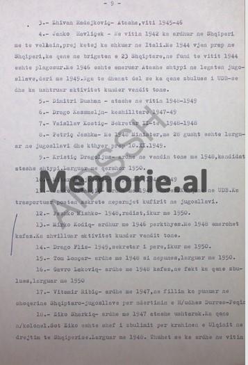- – Mirko Kodiq – ardhur më 1946, përkthyes. Më 1948, emërohet kafaz. Ka zhvilluar aktivitet kundër vendit tonë.