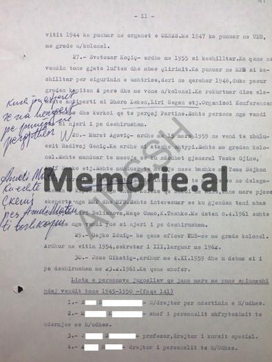 - – Svetozar Koçiç – ardhë më 1955 si këshilltar. Ka qenë në vendin tonë gjatë luftës dhe mbas çlirimit. Ka punuar në Ministrinë e Punëve të Brendshme si këshilltar për Sigurimin e Ushtrisë, deri në qershor 1948, duke pasur gradën kapiten i parë dhe më vonë N/kolonel.