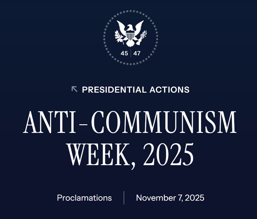 Memorie.al / Më 7 Nëntor 2025, Presidenti i Shteteve të Bashkuara të Amerikës, Donald Trump, ka shpallur zyrtarisht, javën 2-8 Nëntor 2025, si ‘Java e Anti-Komunizmit’. Anti-Communism Week, 2025 – The White House. Deklarata e Presidentit Trump, ka për qëllim të kujtojë viktimat e regjimeve komuniste dhe të ritheksojë kundërshtimin e vazhdueshëm të Amerikës ndaj komunizmit. Në deklaratën e lëshuar javën që kaloi nga Shtëpia e Bardhë, në lidhje me këtë njoftim, Presidenti i Shteteve të Bashkuara Trump, e përshkruan komunizmin si “një nga ideologjitë më shkatërruese në histori”.