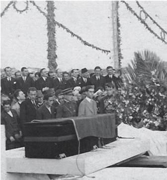 Përpara tregut të math u-ndalue vargu e trupi i të ndyerit, ku u mbajtën dy fjalë të përmortshme e të mallëngjyeshme, njêna prej Prof. Jani Mingës e tjetra prej z. Qazim Kokoshit e, ku ju bâ ndrimi i fundshëm prej ushtrisë me marshin mbretnuer e me ushtarë që mbajtën armët për nderë.