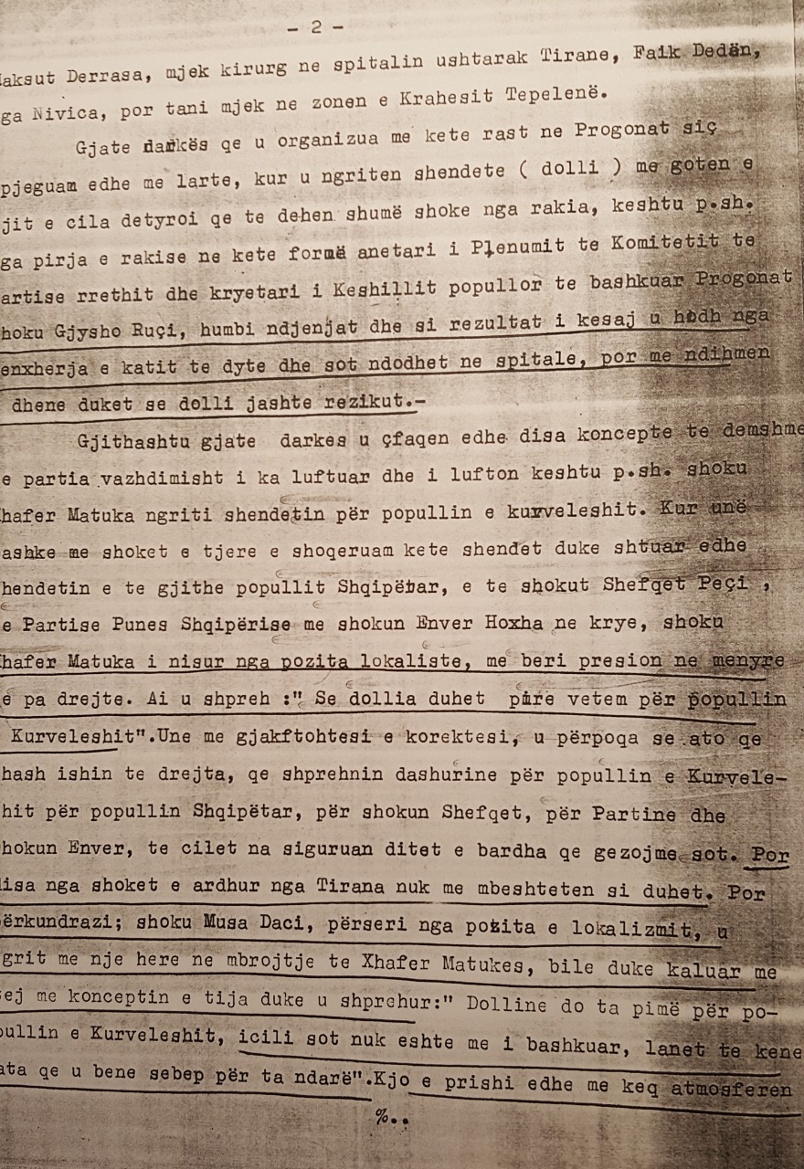Furthermore, during the dinner some quite harmful attitudes appeared which the Party has continuously fought and continues to fight. For example, Comrade Xhaferr Matuka raised a toast to the people of Kurvelesh.