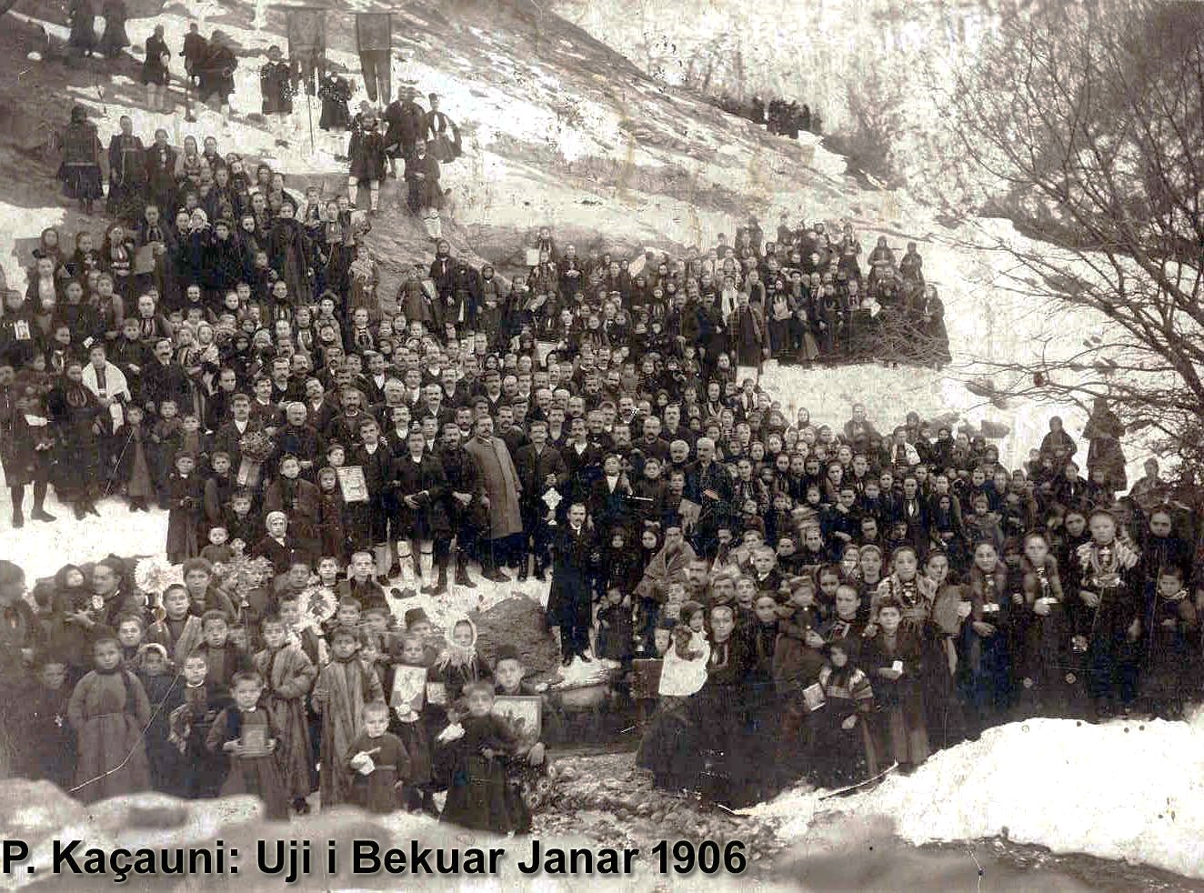 And if you look closely at all the writings in this book, you realize that our photographers, seeing more than just profit, aimed to influence people to awaken their national consciousness, the pride of being Albanian. The rare photo in terms of participation and composition by the photographer Thimi Raci, born in 1886, is enough – titled “Ten Couples from Dardhë,” immigrants who came to their families for Christmas, New Year’s, and the ‘Holy Water,’ lined up in clothing that is both urban and traditional, on a snowy day – to understand how connected they were to their homeland and their village.
