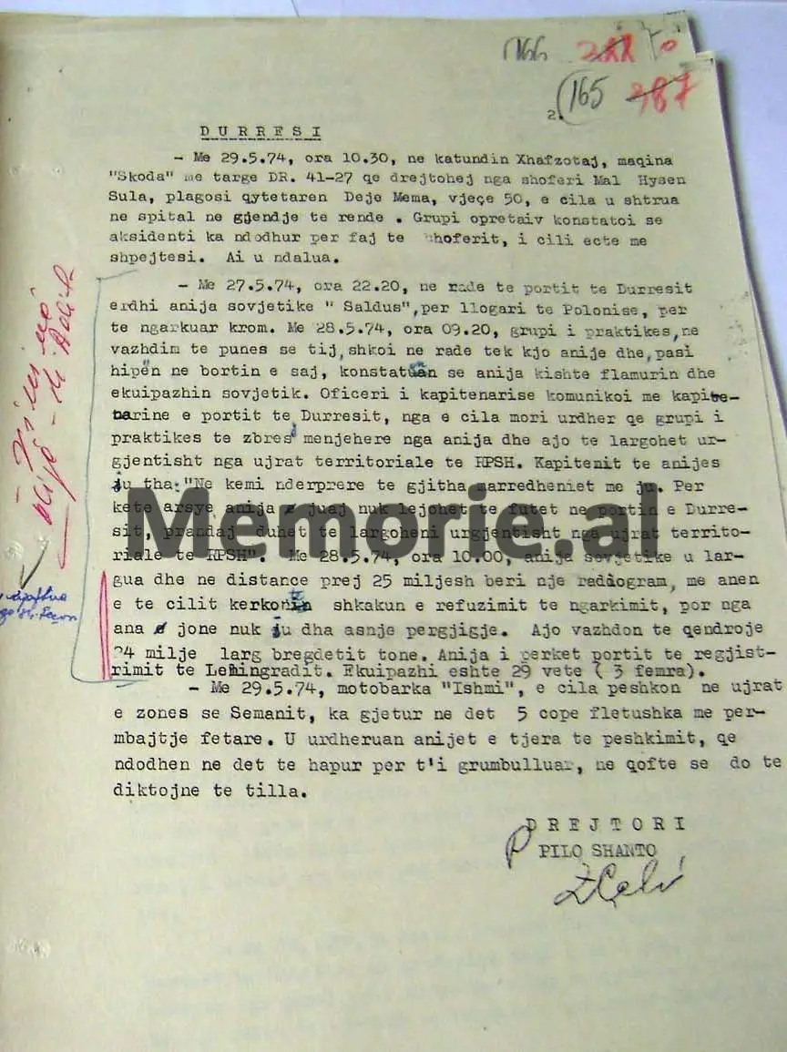Memorie.al/ The document “Operational Communiqué No. 125” dated May 30, 1974, issued by the Ministry of Internal Affairs of the People’s Republic of Albania (PRA), is an archival testimony of particular importance. It describes an unprecedented incident at the Port of Durrës, which reflects the depth of the crisis and isolation in relations between Albania and the Soviet Union during the Cold War, and it’s shocking implications within the Albanian communist leadership itself.