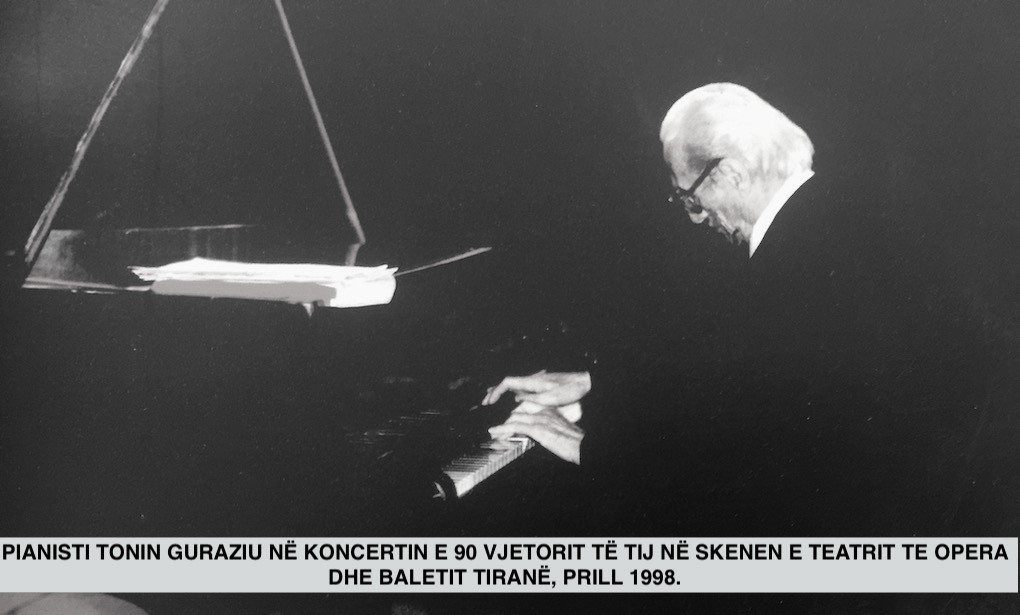 Vetë-shembja e diktaturës komuniste e gjeti pianistin e parë shqiptar Tonin Guraziun, plot 82 vjeç. E megjithatë skena mbeti mbretnia e tij. Sfidoi vjetët e shumta që mbante mbi shpinë e në moshën 88-vjeçare zotnoi skenën e Tatrit “Migjeni” të qytetit të tij të lindjes, tue përformue koncert në piano me rastin e aktivitetit përkujtimor të 60 vjetorit të Koncerit të parë me muzikë klasike në historinë e muzikës klasike shqiptare (Shkodër, Mars 1936), kurse në moshën 90 vjeçare (Prill 1998), përformoi me sukses koncertin e tij (të fundit) në skenën prestigjioze të Teatrit të Opera e Baletit – Tiranë. Ashtu i mbështetun mbas pianos, në celuloid fiksohen këto momente të pakthyeshme edhe për historinë e muzikës.