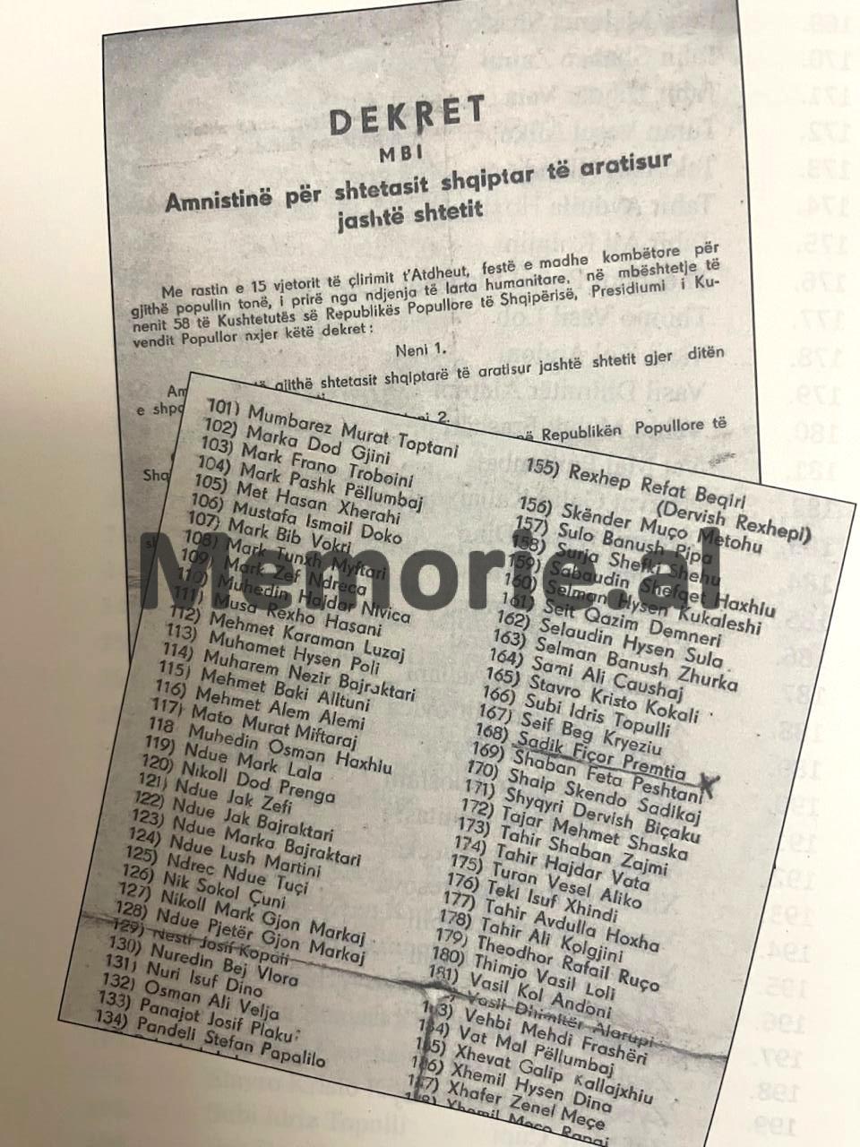 Sipas vendimit të qeverisë shqiptare të asaj kohe, të gjithë personat që ishin në atë listë, shpalleshin “kriminelë dhe armiq të popullit”, pasi akuzoheshin se kishin bërë krime dhe atyre jo vetëm që u ndalohej kthimi në Shqipëri, duke mos përfituar nga amnistitë e ndryshme që jepte herë pas here regjimi komunist i Enver Hoxhës, kryesisht në raste përvjetorësh të çlirimit të vendit, apo shpalljes së Pavarësisë, etj., siç ishte ai i vitit 1958, ku me dekret të Presidiumit të Kuvendit Popullor, (firmosur nga sekretari Sami Baholli dhe kryetari Haxhi Lleshi), nga amnistia e gjerë për të arratisurit që të ktheheshin në Shqipëri, nuk përfitonin 208 persona, të kryesuar nga Ahmet Zogu dhe Abaz Kupi.