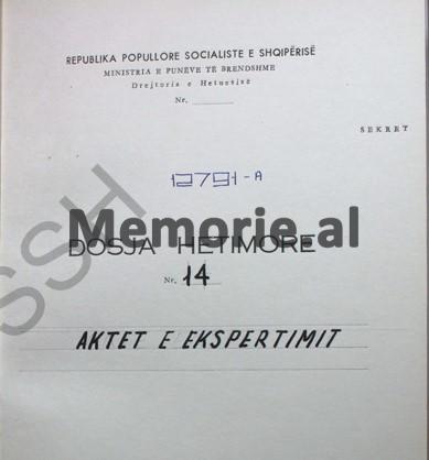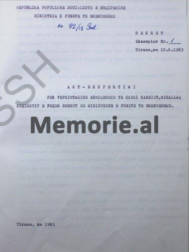 RAPORTI SEKRET ME AKT-EKSPERTIMIN E GRUPIT TË EKSPERTËVE TË MINISTRISË SË BRENDSHME, PËR “PUNËN SABOTUESE ARMIQËSORE” TË KADRI HAZBIUT NË FUSHËN E FORTIFIKIMEVE