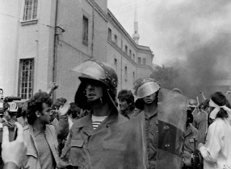Qëllohej me ç’të mundej. Pas dhjetë minutash, turma u praps, duke lënë në asfaltin e rrugës dhjetëra parulla, portrete, një beze të madhe, të kuqe, të grisur, gurë e copa pllakash të shkulura nga trotuari, shishe të thyera, hunj gardhesh, e gjithfarë sendesh, që mund të përdoreshin në këtë dyluftim të paparashikuar, trup me trup. Rreshtat e rregullt të punonjësve të Pashalimanit u shpërbënë, duke ia mbathur kryesisht në drejtim të godinës së madhe të komitetit të partisë, që ndodhej aty pranë, të ndjekur nga thirrjet dhe goditjet me gurë të sulmuesve.