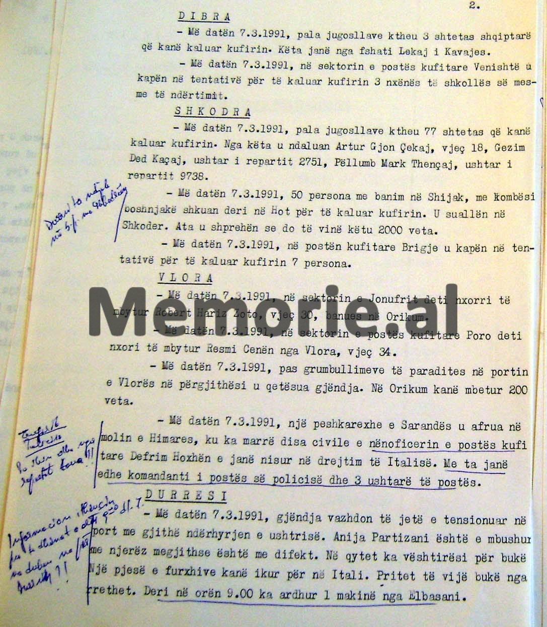 – Më datën 7.3.1991, pas grumbullimeve të paradites në portin e Vlorës, në përgjithësi gjendja u qetësua. Në Orikum kanë mbetur 200 veta.