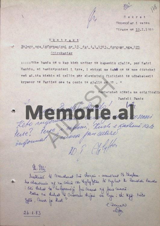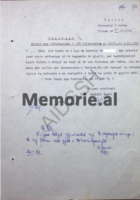 Nxjerrë nga informacioni i Degës së Punëve të Brendshme Gjirokastër, Nr. 60/10, dt. 6.12.1982