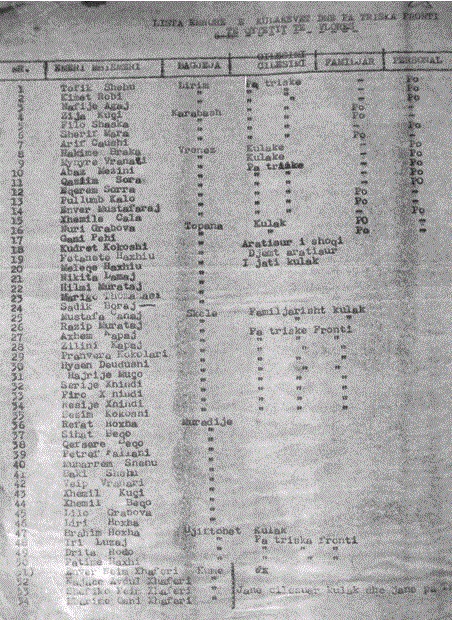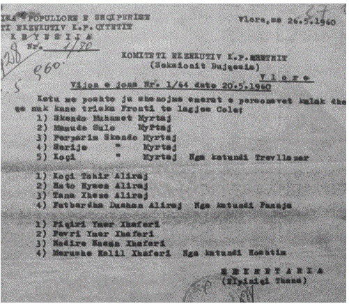 Lista me emrat e 84 familjeve “kulakë” të Vlorës në 1960