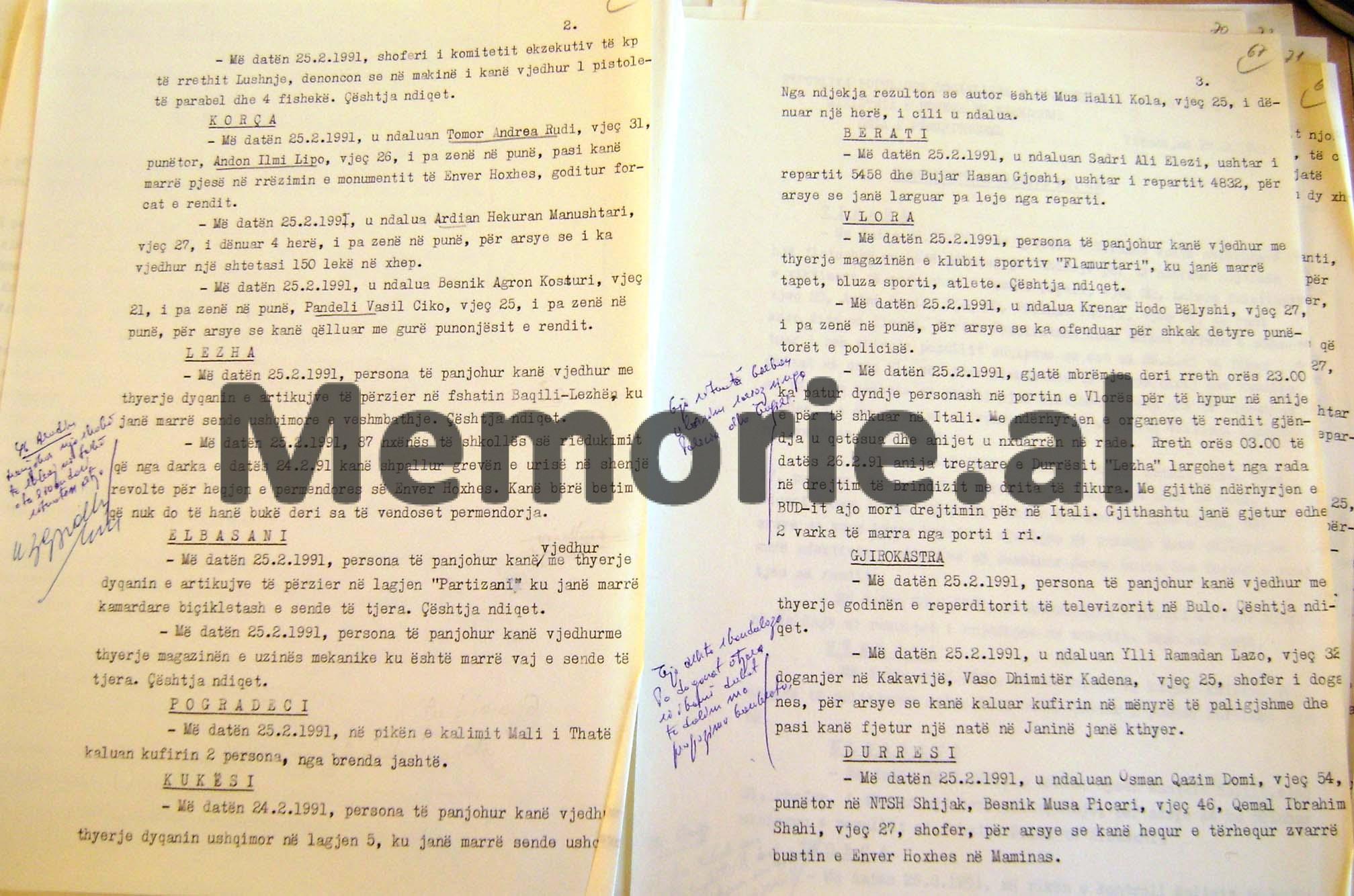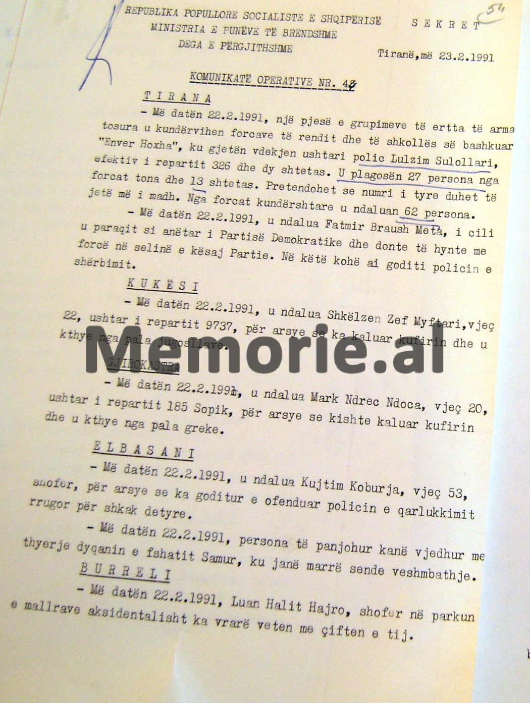 – Më datën 3.3.1991, gjatë natës turma njerëzish kanë shqyer dyert e 5 zyrave të administratës në portin e ri, kanë ndezur zjarr dhe janë djegur dokumentet.